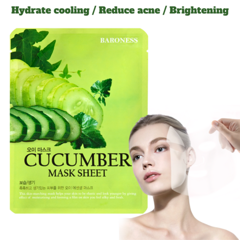 CUCUMBER Facial Mask Sheet- Hydrate cooling / Reduce acne / Brightening